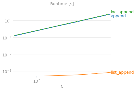 locused to append to a DataFrame that was created empty:As before, you have not pre-allocated the amount of memory you need each time, so the memory is re-grown each time you create a new row. It's just as bad as